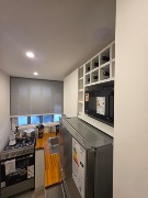 Ambiente dividido con amplio ventanal de piso a techo súper luminoso, cama sommier a estrenar de dos plazas, resplado de cama con mesas de luz incorporadas, mesa con 4 sillas a estrenar, rac con TV Smart 32 pulgadas nuevo, aire acondicionado frio calor, plantas, perchero de pie, cortinas, acolchado y decoración.