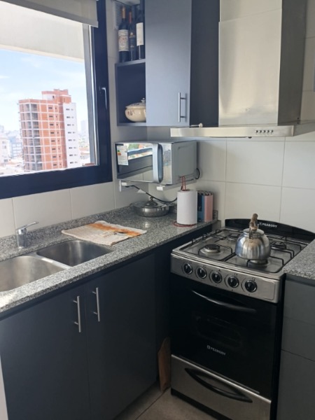 Gran living comedor con cocina de concepto abierto, dan a la av. Paso. Mucho sol ya que la unidad es semipiso